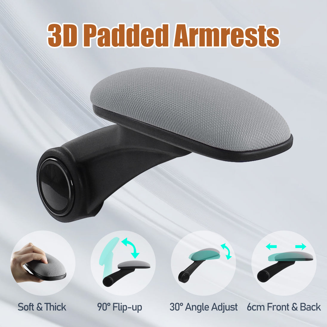 Elevate your arm comfort to a new dimension. Unlike basic armrests, our padded 3D armrests adjust in multiple directions to support your elbows and forearms perfectly, whether you're typing, mousing, or simply relaxing. This nuanced support is key to reducing tension in your shoulders and neck.