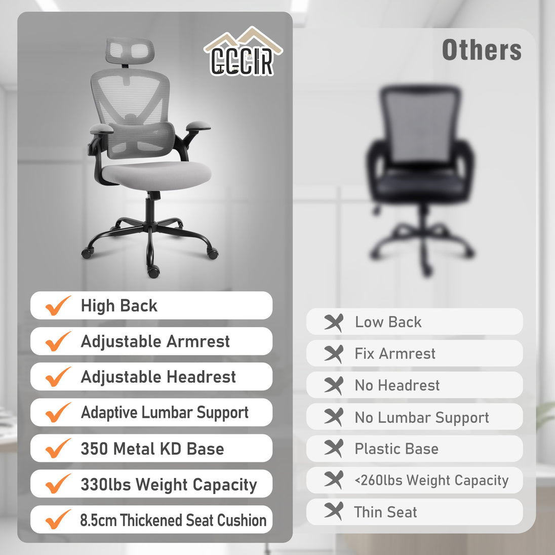 Stop letting an uncomfortable chair hold you back. The GGCIR Ergonomic Chair combines durability (supporting up to 150kg / 330 lbs) with intelligent design to become your daily partner in productivity.