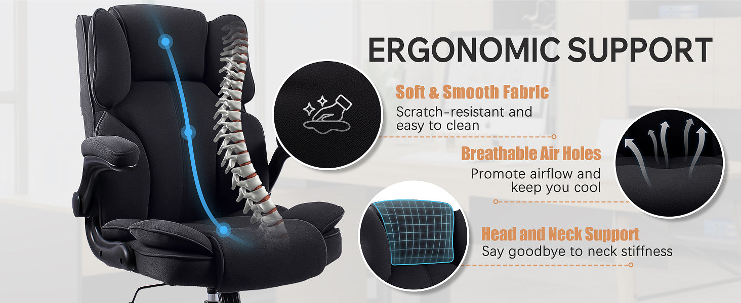 Featuring soft, scratch-resistant fabric and breathable air holes, this chair keeps you cool and comfortable. The head and neck support design helps prevent stiffness, making it ideal for long work hours.