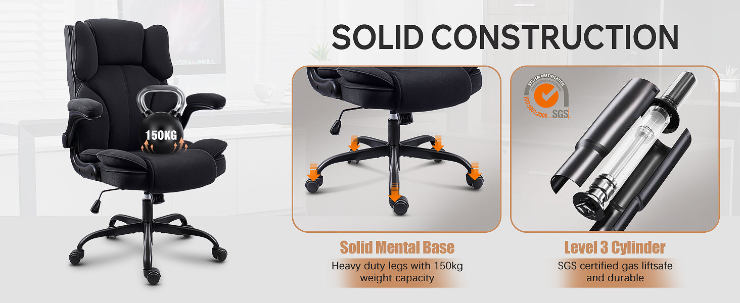 Built to last, our Office Chair features a solid metal base and heavy-duty legs with a 150kg weight capacity. The SGS-certified gas lift ensures safety and reliability, making it a sturdy and long-lasting choice for any workspace.